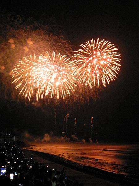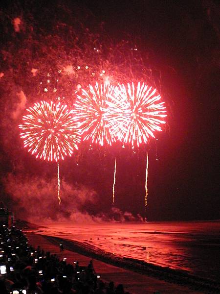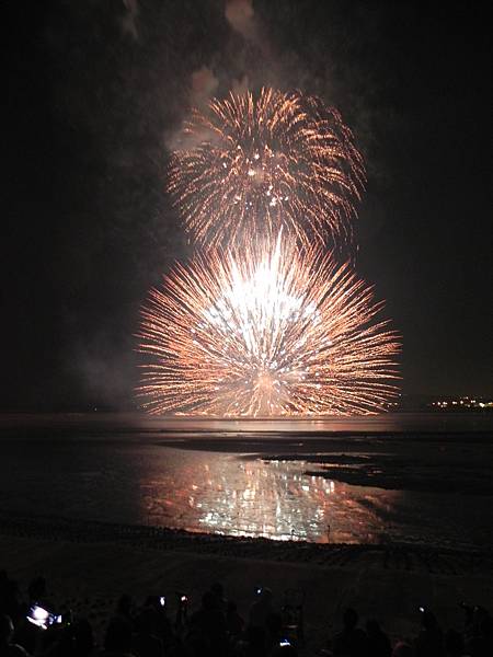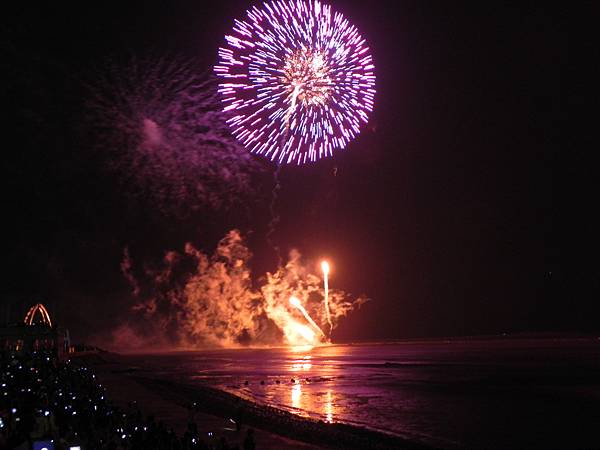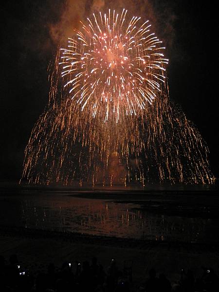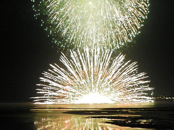今年的國慶煙火是在新竹舉辦,別出新裁的在海邊,所以有機會看到倒影喔。什麼都不必說,熱騰騰的國慶火照,先給大家看看,不多說了(沒帶腳架,我的手快廢了)。