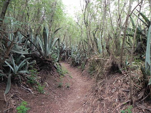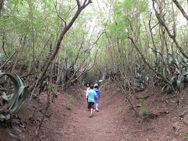 接著進入的是龍舌蘭步道,一開始還以為是林投勒,腳下的步道由於多年無人行走,被落葉給鋪成厚厚的地毯一般,好有彈性喔