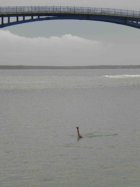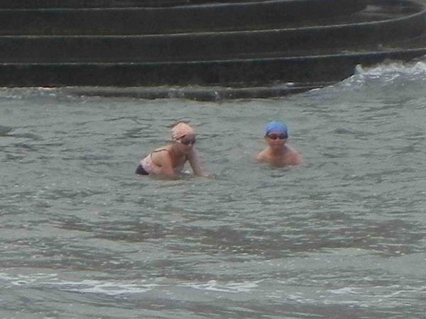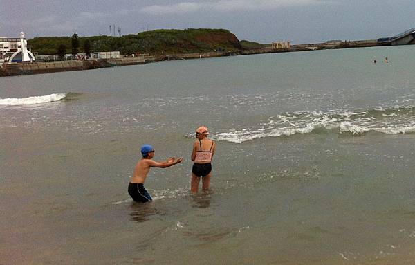 ,其實不是啦~~這裡堤防內部已經變成一個海水浴場,許多遊客都會在這邊游泳嬉戲。