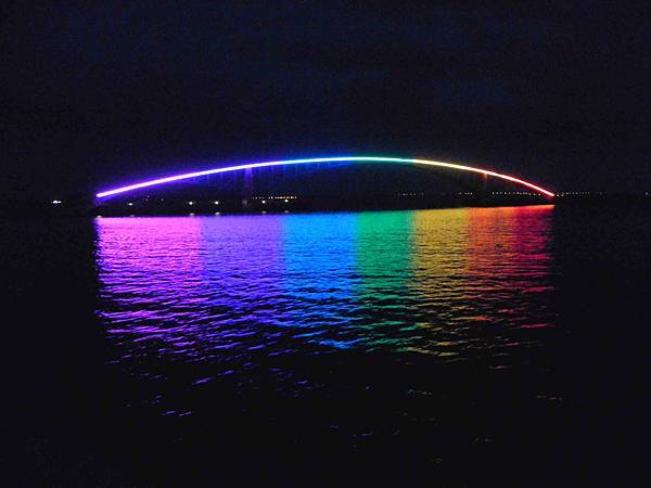 這個彩虹橋將堤防連接在一起,原本以為沒什麼的橋,到了晚上很美喔。
