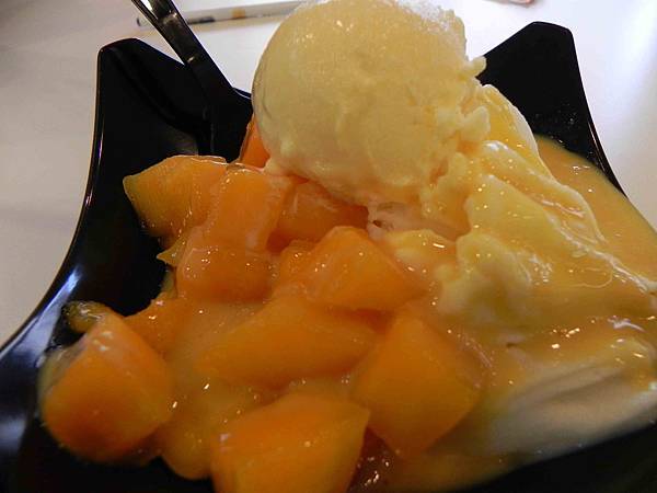 芒果牛奶綿綿,想不到這邊可以吃到芒果,還算新鮮的芒果林上芒果醬加上一球冰淇淋,這是我們最愛的之一。