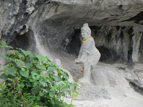 阿妹介紹遙遠的石壁刻著3個兄弟的故事。