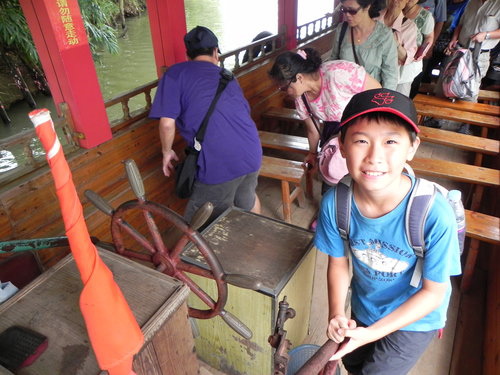 遊客還可以拿起船槳幫忙划船喔,只是不熟練的大家,基本上都是將水潑到其他人身上而已。