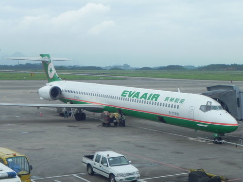 這次往桂林是搭乘長榮的班機,早出晚歸的時段號稱是紅眼班機,因為要一早3點多起床(擔心睡過頭所以睡不好=紅眼睛