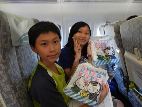 坐不到Hello Kitty專機沒關係,兒童禮物是Hello Kitty的商品也很棒,羨煞眾多人喔。