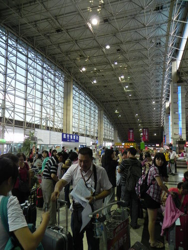 桂林的機場不大,聽導遊說早年還是中國幾大機場之一,隨著沿海都市的開發,如今的桂林已經是四線城市了,專心做觀光城市,這規模夠了。