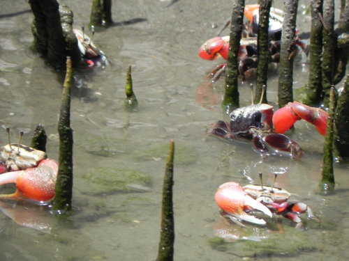 來這邊乘竹筏不只是看看紅樹林,綠色隧道,還可以看到超多超大的招潮蟹及白鷺鷥....等等豐富的生態。