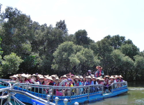 台江國家公園這邊有2條乘船遊湖的景點,我們選擇的是台江四草竹筏港體驗「水上綠色隧道」,這隧道也號稱台灣袖珍版的亞馬遜河喔。