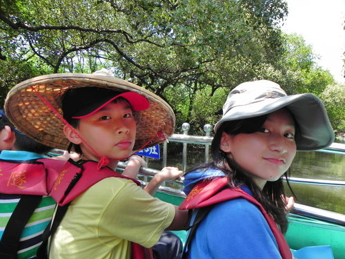 忘了說一下,大家都要穿著救生衣戴著斗笠乘船喔,除非你有帶著帽子。