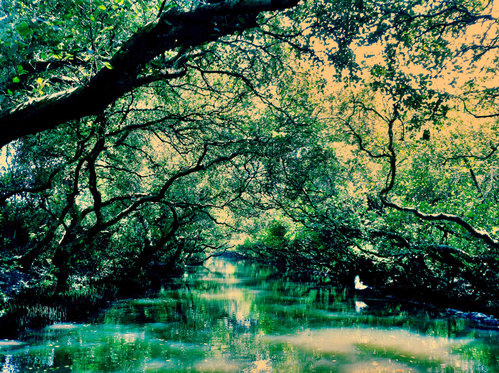 特殊效果下的綠色隧道,加上白鷺鷥呈現出不一樣的美麗。