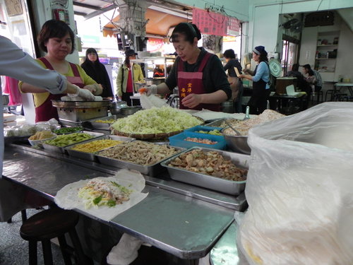 聽說台南的國華街市場小吃店林立,只要看到哪裡有排隊隊伍,那就是真的好吃啦,首先來到的金得春捲是有50年資歷的老店。
