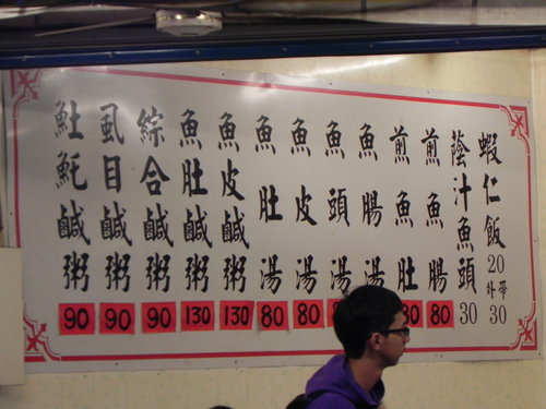 台南是虱目魚的產地,要吃到新鮮的虱目魚,在地人推薦在早上或中午吃到的最美味,因為虱目魚一早便由產地直送,現宰才夠新鮮,若是下午吃到的通常會是冷凍的居多;而西門圓環旁的阿堂鹹粥,就是品嘗虱目魚料理的好地方,我們因此一早趕到這邊,沒想到已經有不少人已在用餐了,這是什麼狀況ㄚ,大家上班都這麼早嗎,還沒6點耶,還是說........這些人是剛下班的。