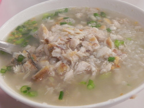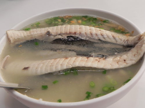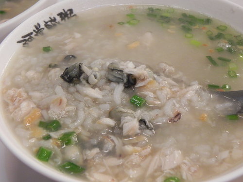 魚肚鹹粥,超大一塊的虱目魚魚肚,經過刀工處理,不僅完全沒刺,配上剛剛好的粥,溫暖了我們早起還冷的身體。