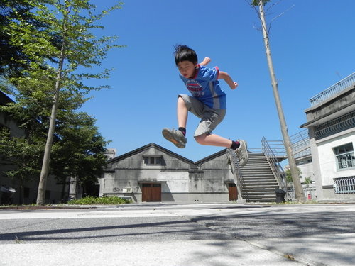興致來了,表演跳躍中。