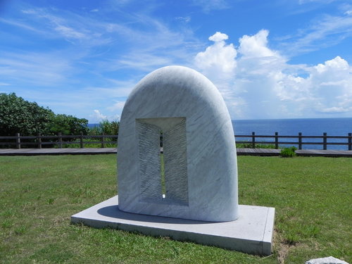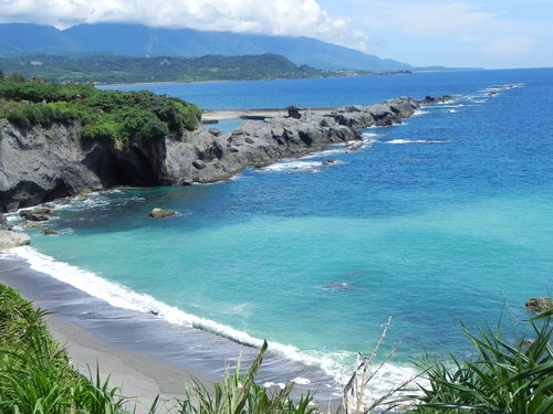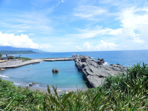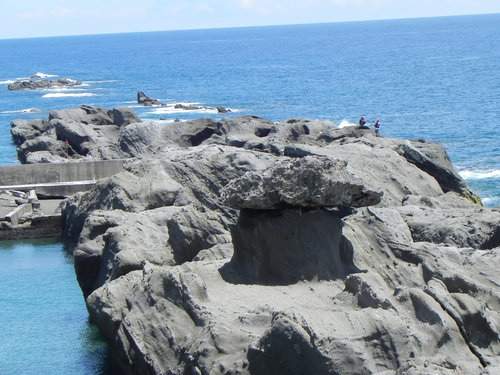 這邊屬於石灰石隆起的海蝕地形,狹長岩岬、礁石、海蝕地貎,向東北方向斜伸入海長達 一公里 ,景觀獨特而壯麗。