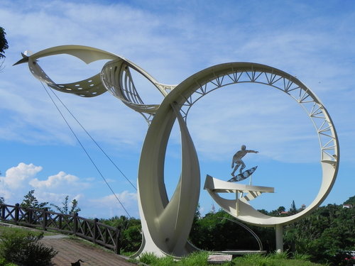 這個大型藝術創作品,應該是一個衝浪的表現。
