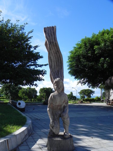 新東藝術文化園區觸目所及都是舊糖廠閒置的建築,集合眾多藝術家的巧思,充分將空間規劃轉換為處處都見滿藝術氣息的環境,園內隨處可見用漂流木的雕刻、鵝卵石與鋼筋所組成的藝術品,顯得十分原始與粗獷。