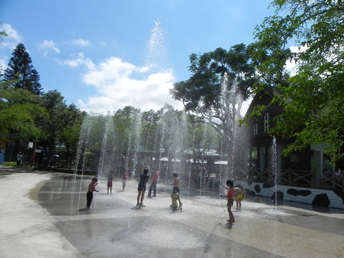這幾天天氣真的很熱,還好這邊有讓小朋友開心的小噴水池,已經有一個小朋友寬衣解帶了。