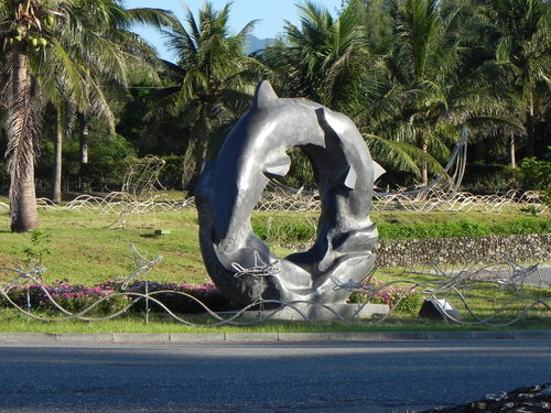 出發前都訂不到房間,後來才知道原來是鹿野高台的熱氣球活動造成的,只好帶著帳篷來到後山台東這邊露營,跑了一整天的行程來到這邊,看到了門口有海豚列隊歡迎著我們。