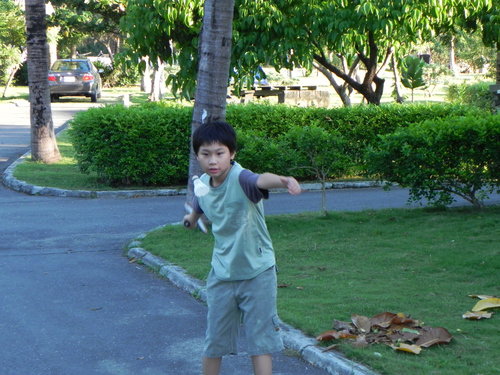 看完場地後該是進入運動時間了,這次的羽球大戰是由母子倆先對戰。