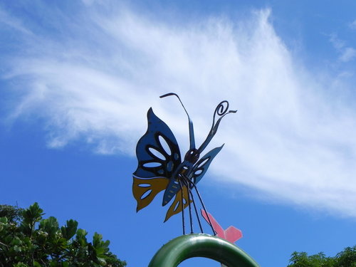 美麗的蝴蝶在藍天白雲襯托下好像要飛舞而去。
