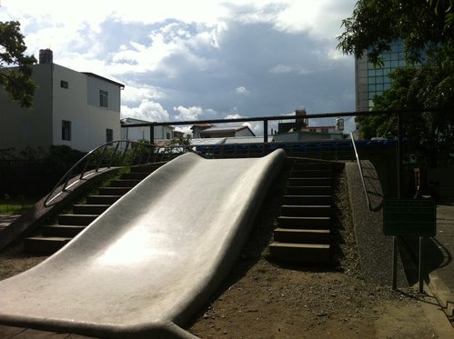 看到這個超大的溜滑梯讓大人小孩都幸福起來。