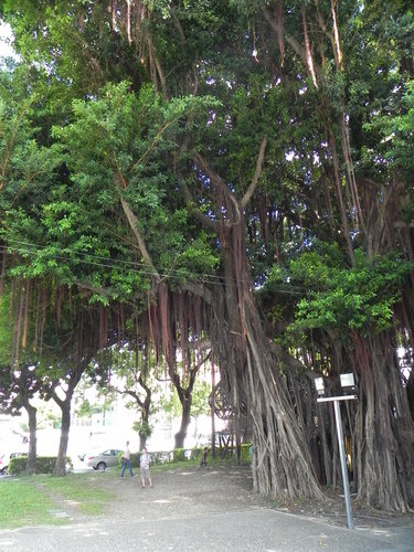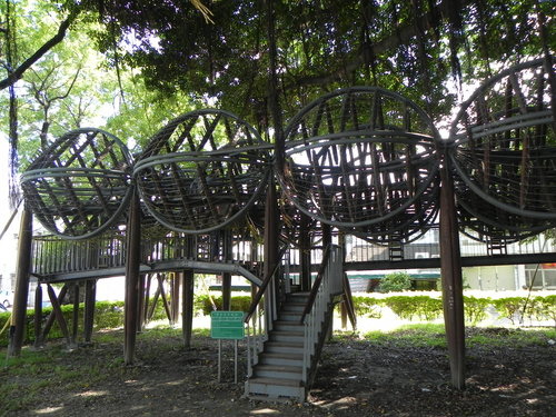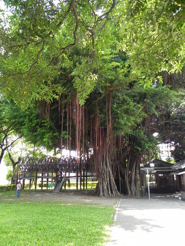 旁邊這棵非常非常大的榕樹,年紀應該非常的大了,大到氣根都鑽入地上好像形成一顆顆的小榕樹,彎曲的通道已經可以讓小朋友玩躲貓貓了。