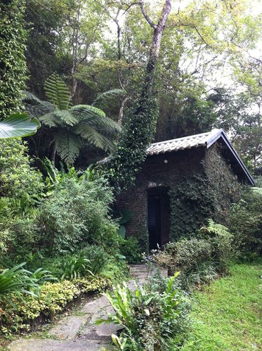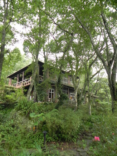 從入口處下來可以看到這棟建築隱身在樹林間。