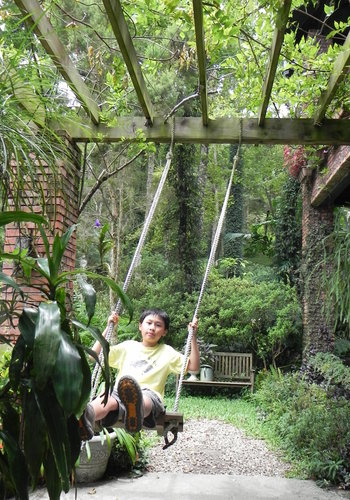 還沒進餐廳就已經在門口的木鞦韆玩起來了。