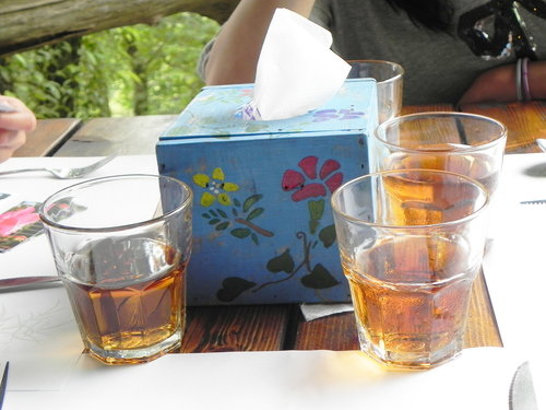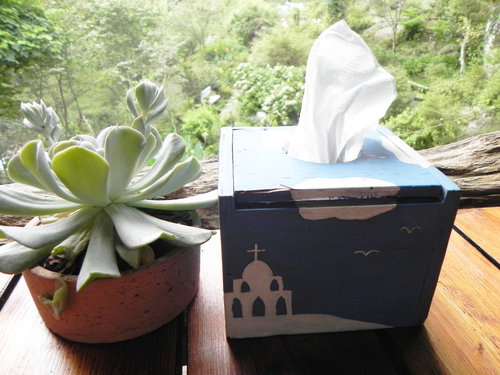 店內桌上的餐巾盒都是木製的,而且都有造型和彩繪ㄛ。