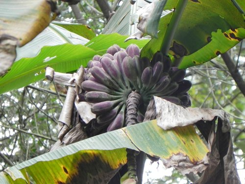 這是台灣原生香蕉,個頭與珍珠蕉差不多,成熟的皮是紫色的,基本上是沒人吃的,因為需要邊吃邊吐仔,又不好吃。