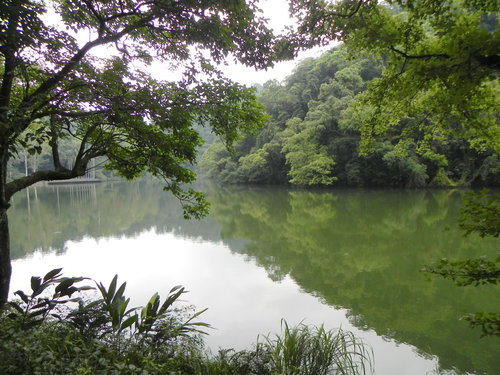 新月形的後慈湖,發源於白石山上的小溪澗原名「龍過脈埤」是桃園農田水利會的灌溉埤塘。如果山巒和湖面都籠罩在一片薄霧中,會更增添其神秘感。