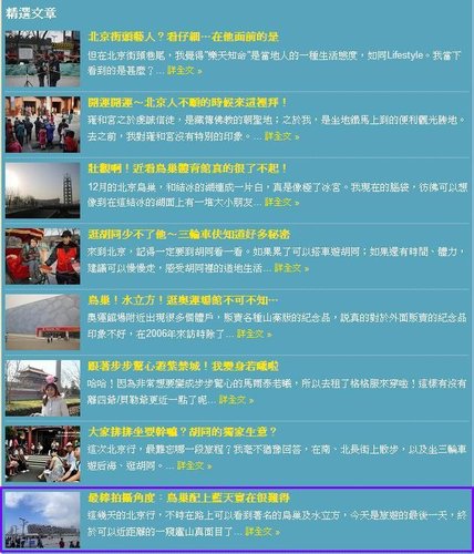 今天發現YAHOO奇摩有一個< 驚奇奧景點 > 所舉辦的活點,其中選擇了9個舉辦過奧運的國家做為主題,每個國家挑出些文章分享,目前我的4篇文章入了精選耶~真是太僥倖了