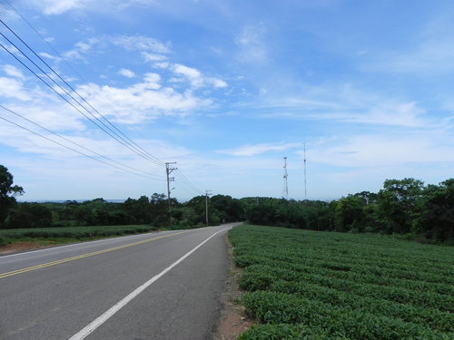 決定到新竹湖口的仁和步道及金獅寺步道看油桐花,快到時路上的茶園與藍天白雲相呼應,感覺不錯。