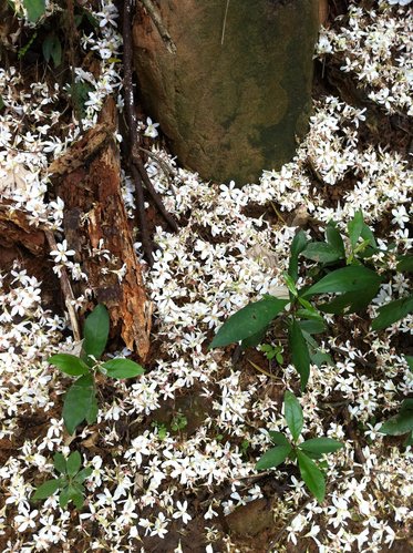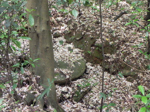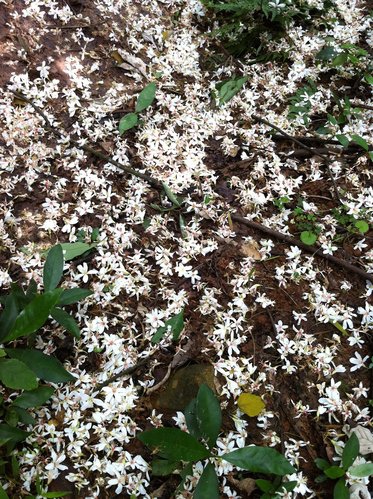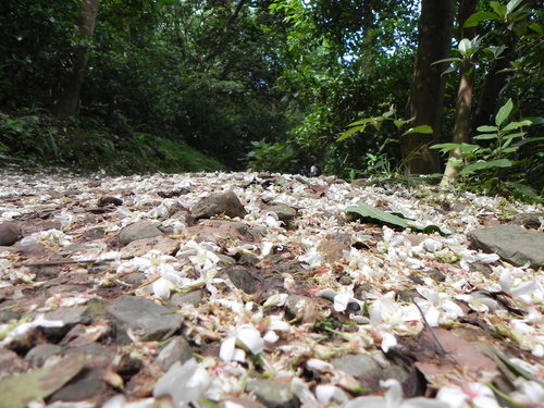 這邊的路上油桐花較多,路旁及沒人走的地方滿地都是。