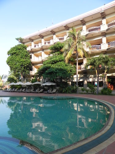 這5天4夜的行程有3天是住在位於暹粒市的吳哥福華飯店( ANGKOR HOWARD HOTEL),應該是2005年初夏起用,領隊介紹這家國內準5星級飯店,說其實是國際4星級飯店啦。