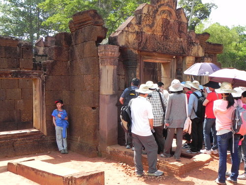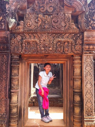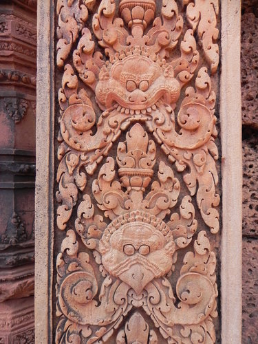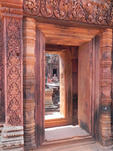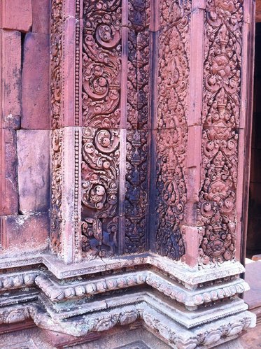 因此深深地為其所吸引...他細細地品味著一尊尊淡粉色的仙女浮雕、並驚嘆地賦予其為【東方蒙娜麗莎】之美譽。女皇宮以其精細之雕刻聞名,堪稱吳哥遺址群中最為玲瓏別致的一座寺院;寺院雖小巧;但能一賭其粉色砂岩浮雕之魅力,那絕對無法用任何語言可形容的...「女皇宮」以其精細之雕刻聞名,堪稱吳哥遺址群中最為玲瓏別緻的一座寺院;寺院規模雖小巧;但能一賭其粉色砂岩浮雕之魅力,那絕對無法用任何語言可形容的…