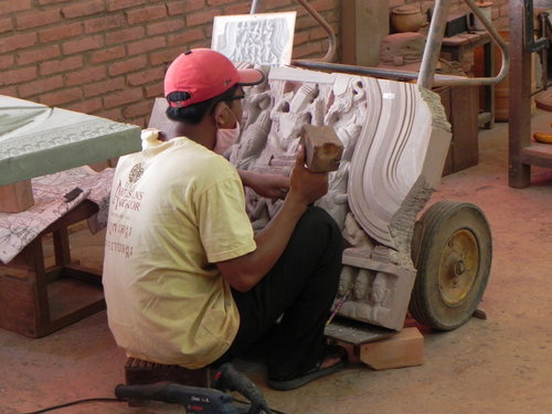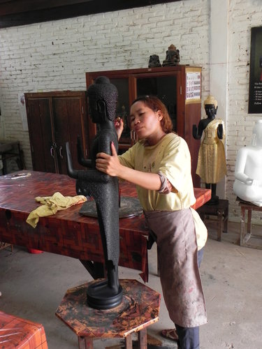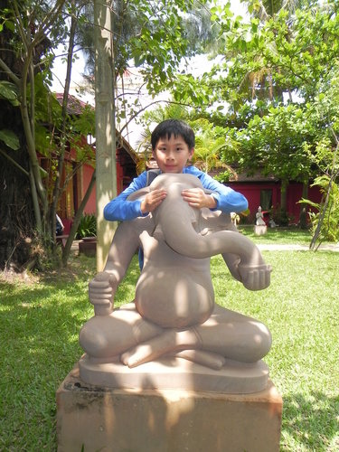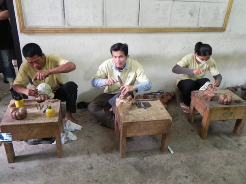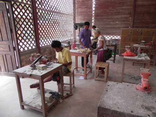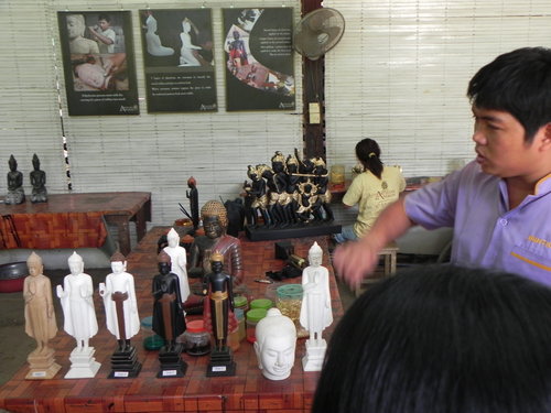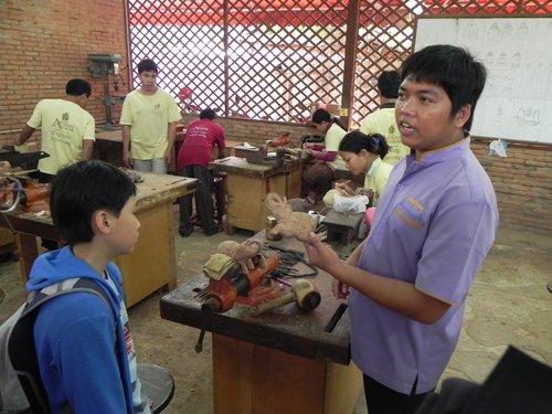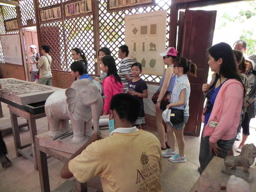 遊完洞里薩湖後,接著驅車來到吳哥藝術文化學院 Amansara Artisan D'angkor ,導遊說這是柬埔寨政府規定行程,這裡是由法國文教藝術組織與柬埔寨政府聯合設立,提供場地並訓練柬國青年培養一技之長的所在,如編織、石刻、蠟染、繪畫等,貴賓們亦可於此參觀選購一些紀念物品。