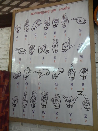 這裡收了許多的聾啞學生,所以牆上可以看到手語教導的看板。