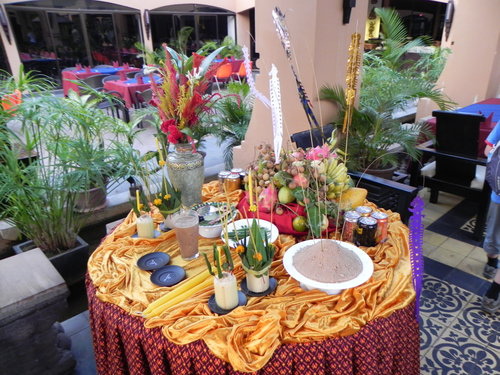 這5天看到的餐廳或是店家,發現他們祭拜的神明神桌都是放在地上,跟台灣完全不同。