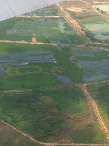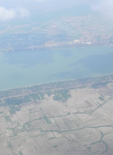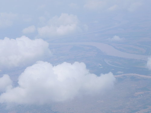 到了金邊上空,看到大部分的房舍都集中在河的兩岸。