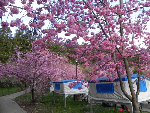可以看到營區服務中心後面的藍天白雲,這2天的賞櫻之旅大大的成功。