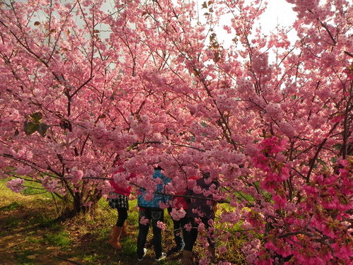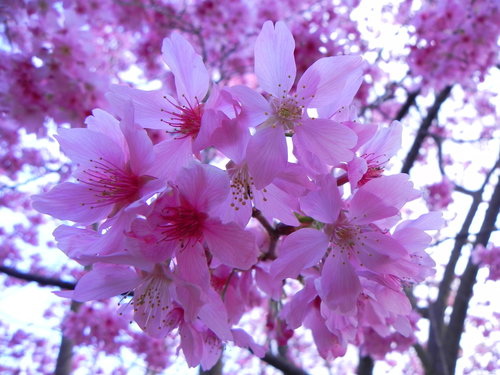 漂亮的紅粉櫻花是以中國櫻桃及日本櫻花配種而成。