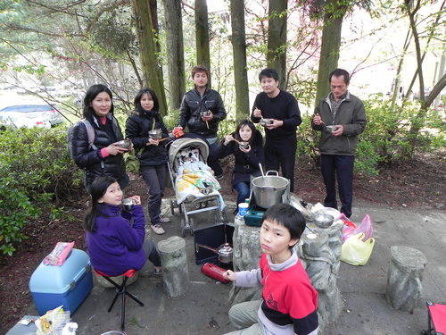 環境勘查完畢,小朋友也玩累了,大廚開始準備美食,這裡規定不可以在桌上烹煮食物,所以幾乎80%的大廚都是蹲在地上。