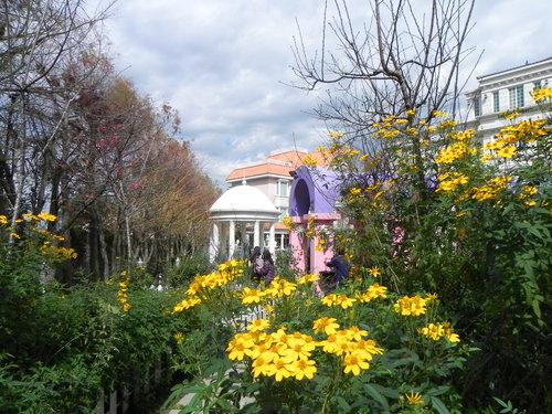 一進來就可以看到許多漂亮的花花草草,整排的落羽松在12月中應該是最火紅的時候,還有一些楓樹和櫻花,在不同的季節呈現不同的景緻。