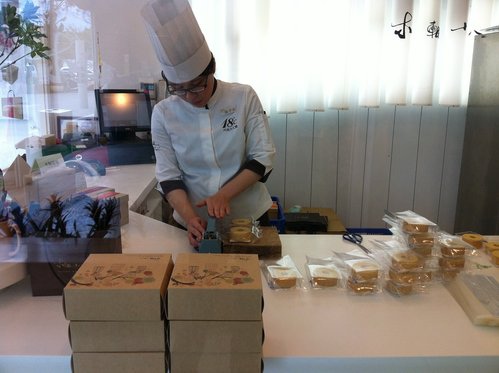 木輪蛋糕都是現做的唷!! 而且現場就可以看到店員在包裝~
