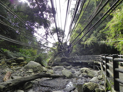 在八通關露營區搭完帳棚後,接著大家往彩虹瀑布前進,彩虹瀑布是東埔溫泉的源頭,步行大約45分鐘就可到達(僅供參考~~視個人體力),而且只要天氣良好,中午以後瀑布奔放地宣洩與太陽熱情地照射,繽紛的彩虹就有機會出現,這就是彩虹瀑布的由來。