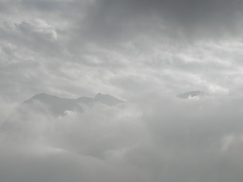 等了一會兒沒看到彩虹出現,只好拍拍瀑布及遠方雲霧飄渺的山峰。