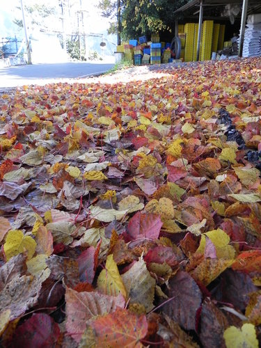 往福壽山賞楓的路上,沿途可以看到一些落葉鋪滿整條路的兩旁。