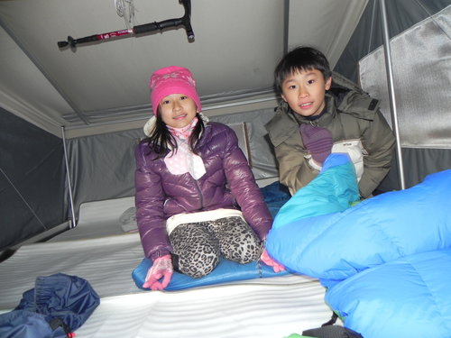 寒冷的夜晚難眠,到是小朋友居然一覺到天亮,差這麼多 ? 隔天早上6點40分看了溫度計才3-4度,可想而知夜晚有多冷。